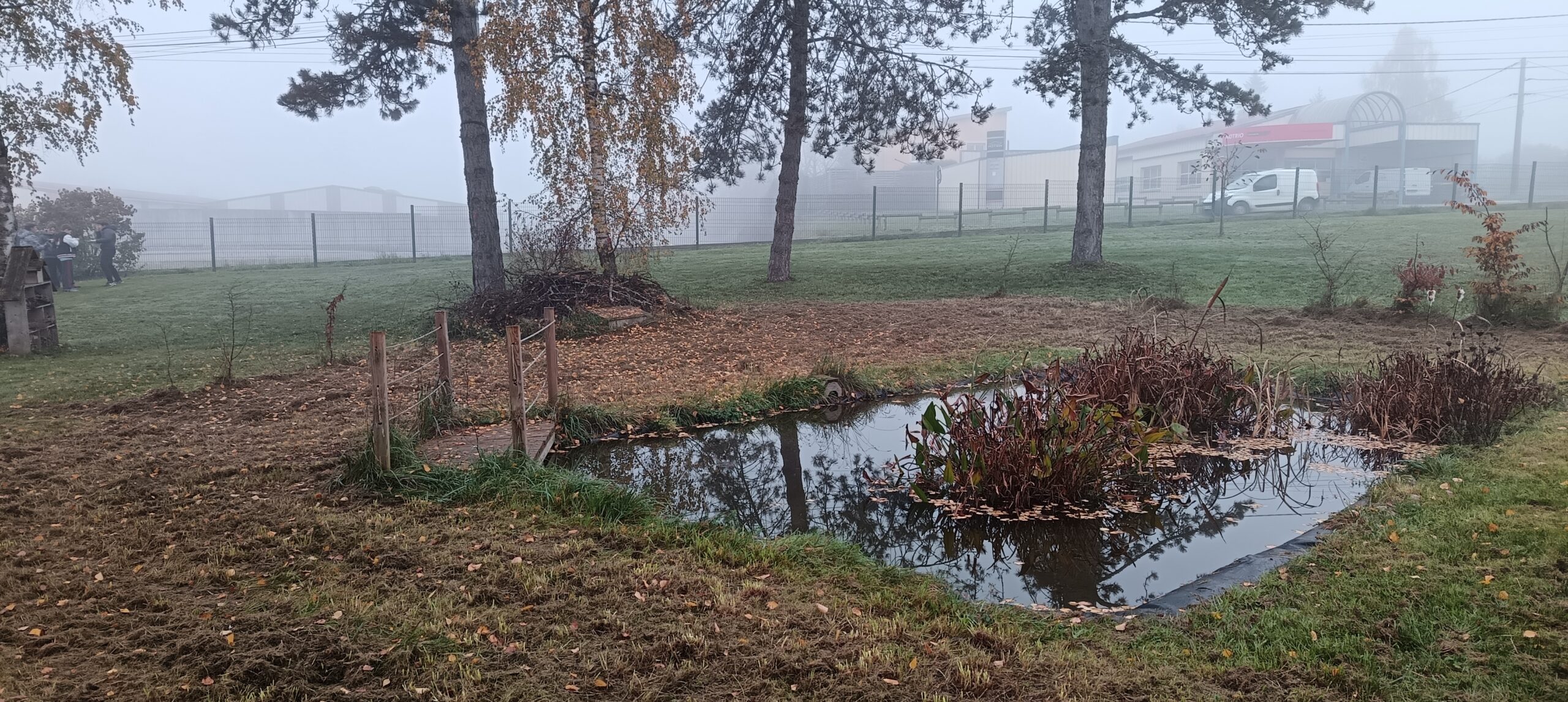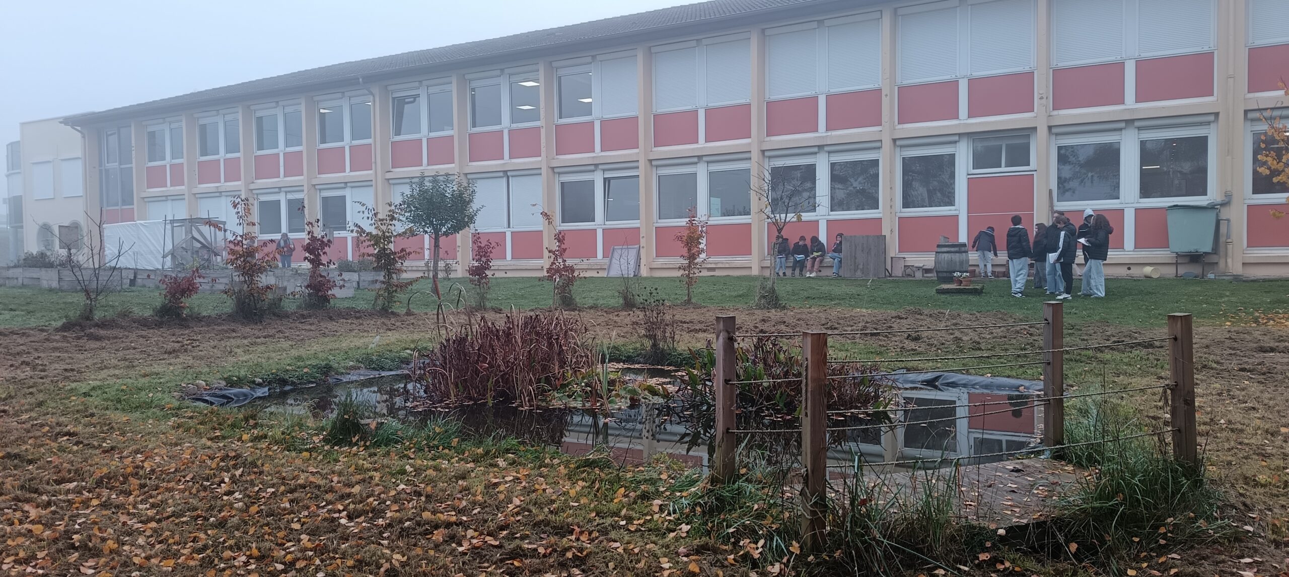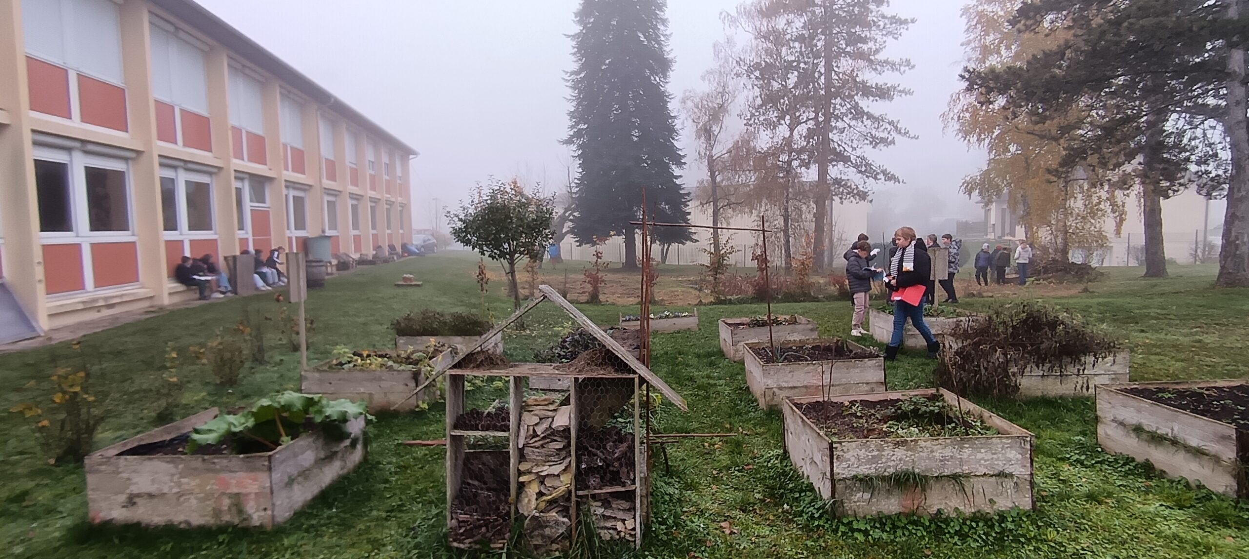 On aurait pu croire à les regarder que les élèves se baladaient gentiment autour de la mare pédagogique et du potager des Gastons en discutant de leur week-end, mais ils étaient AU BOULOT, sous le regard de leur professeur M. Chemin, de l’AESH Mme Castioni et de Cynthia Lecorne (de la Maison de la nature de Brussey).