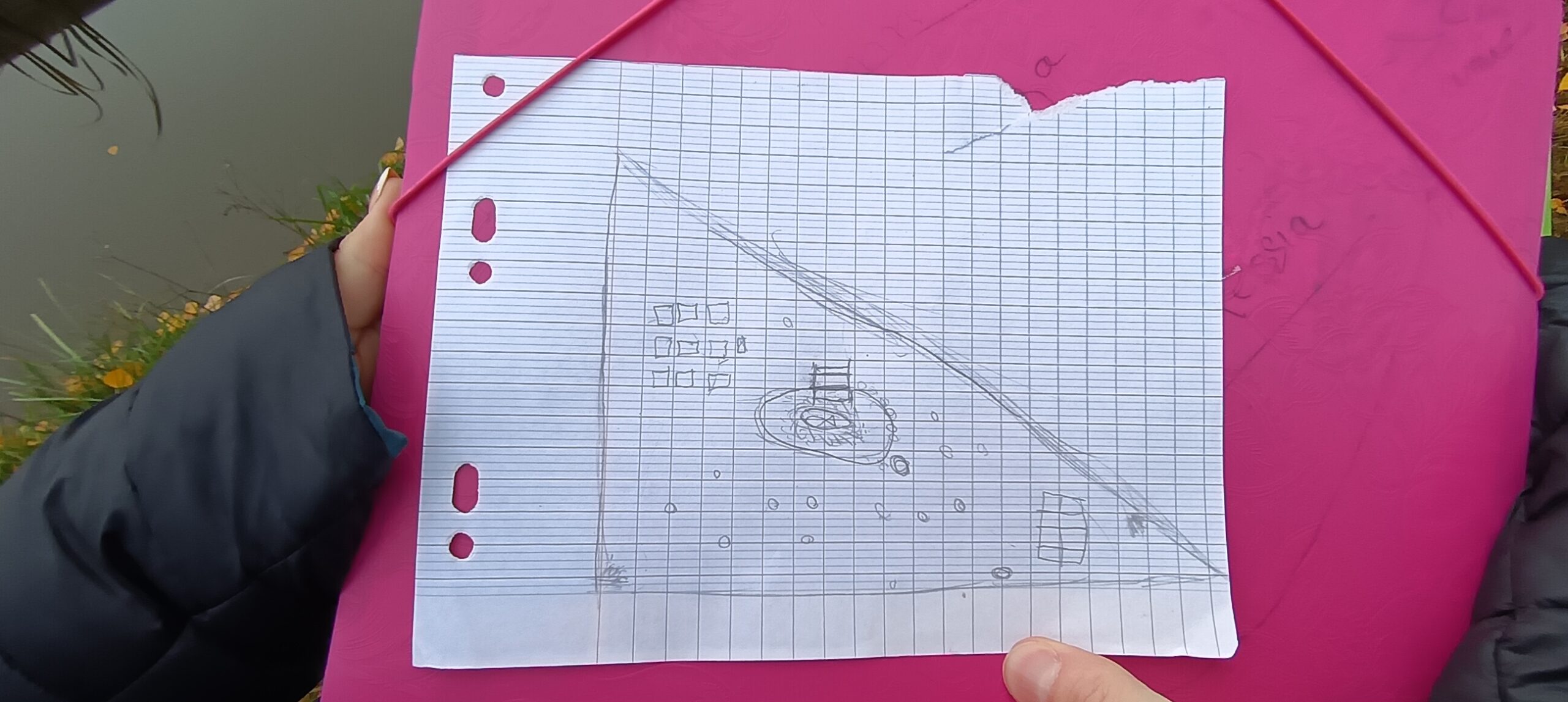 Leur mission: représenter l’endroit où ils se trouvaient sur une feuille , puis modéliser cette sorte de plan en remplaçant les arbres, la mare, la passerelle, le potager par des figures géométriques. Pas si simple de passer de ce qu’on voit à hauteur d’élève à un plan précis et détaillé. Cette heure passée dans le froid mais dans la bonne humeur n’est que le début du travail, les élèves devront le poursuivre à la maison…